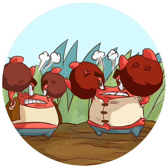 9.又一个春天来了,青年小河蟹们有活泼好动起来,经常会和小伙伴们切磋武艺,也会为了美食大打出手。