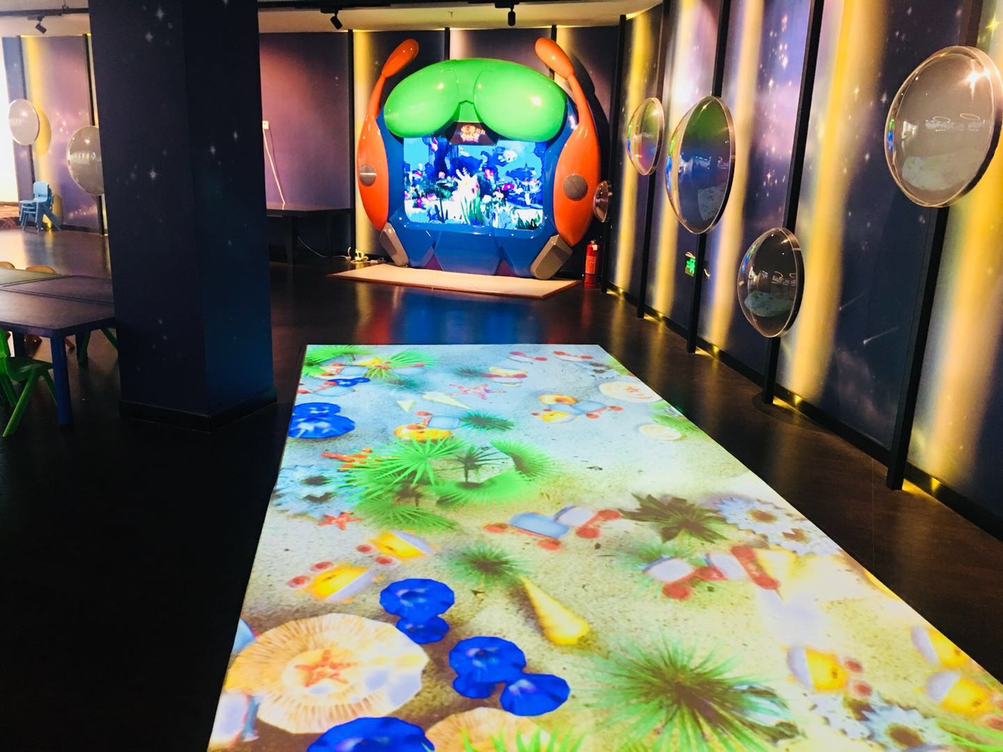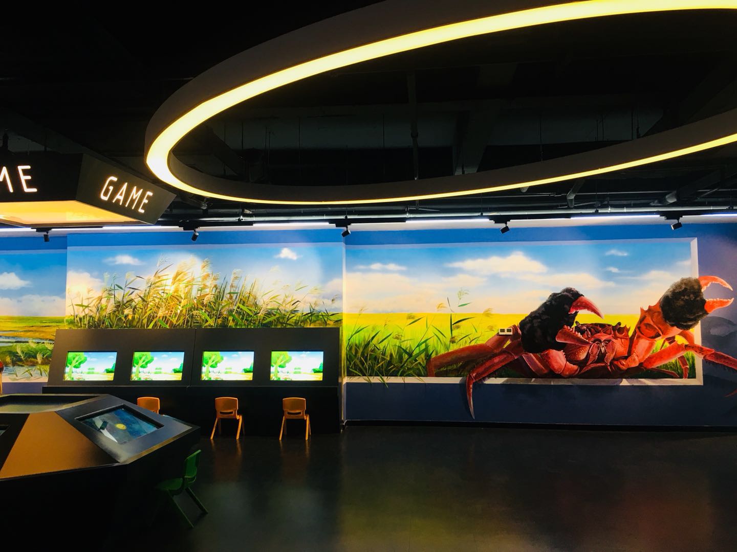互动体验厅墙壁上使用红滩、绿苇和稻田的元素对辽河口大湿地进行缩略展现,在这里可以拍出3D画的最佳摄影角度;不仅有栩栩如生的3D墙画,还有益智类小游戏,这些的游戏内容都是与蟹稻家相关,这里是小朋友们的游戏天堂,在这里小朋友们可以尽情享受游戏带来的乐趣,既快乐又益智!