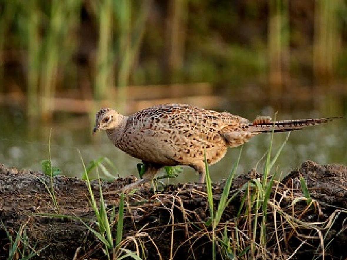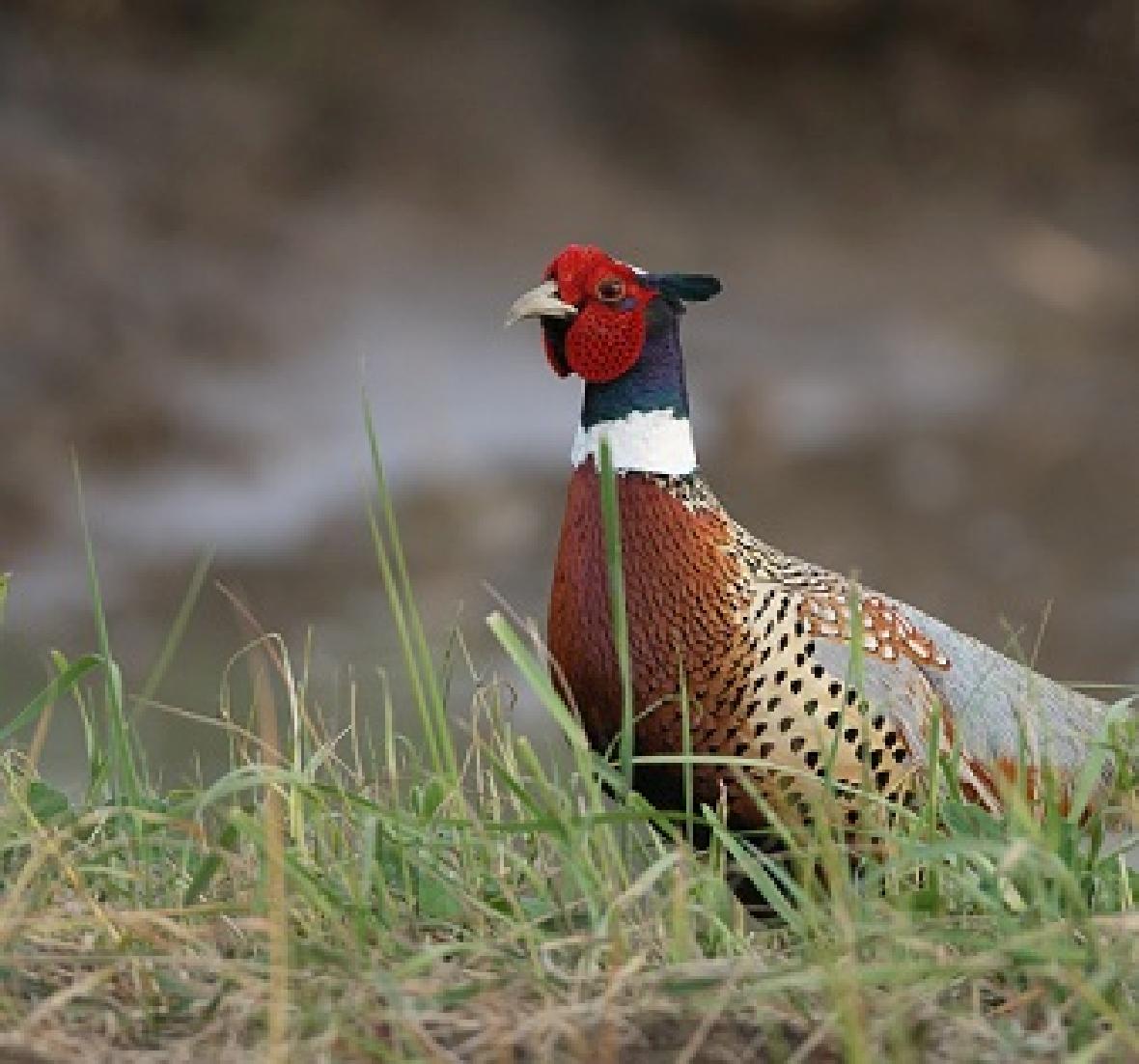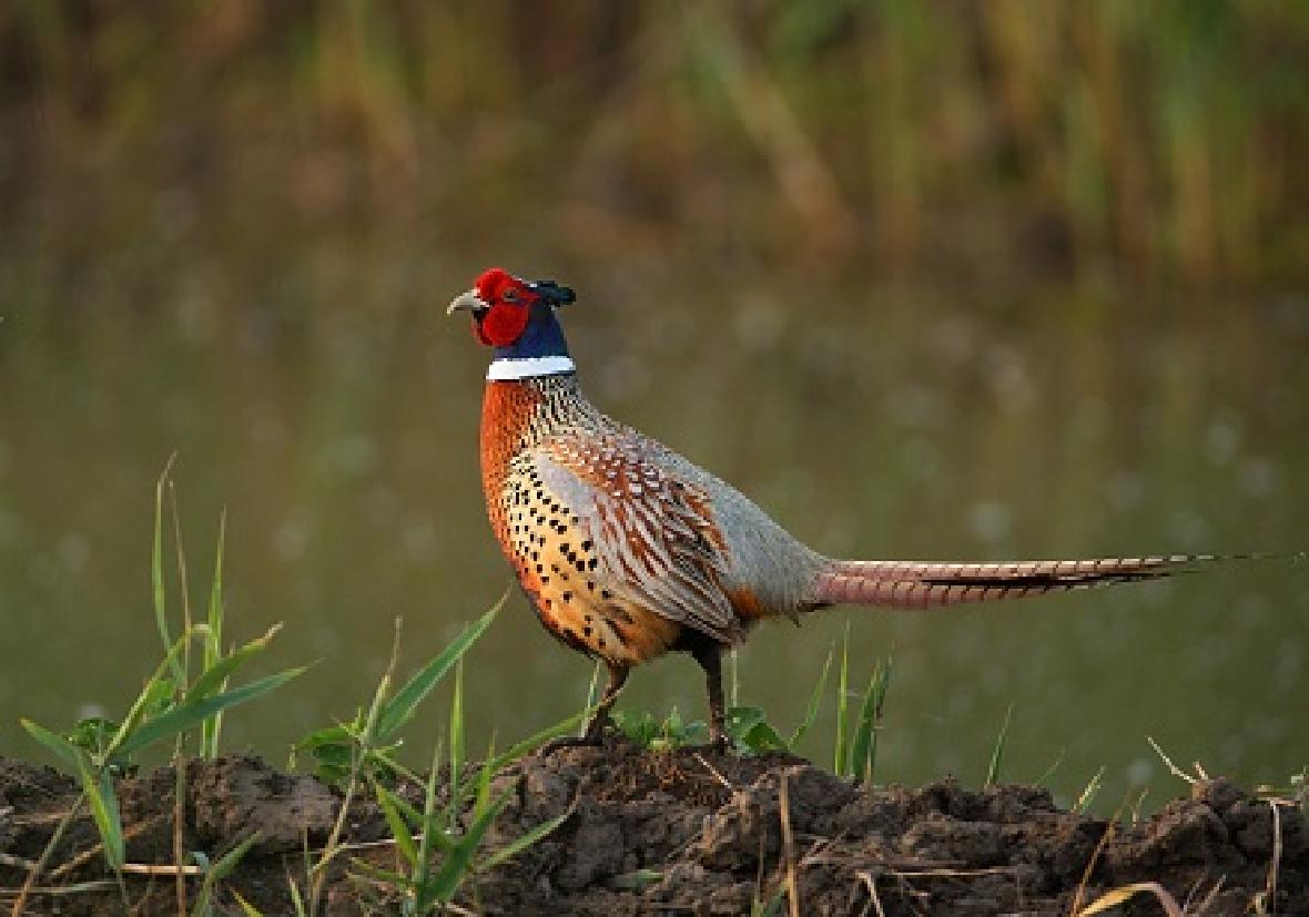 环颈雉,俗称:野鸡。体长46~100cm,体重0.41~1.99kg。栖息于蔓生草莽的丘陵中。夏季繁殖期,可上迁高山坡处;冬季,迁至山脚草原及田野间。喜食谷类、浆果、种子和昆虫。善走而不能久飞。繁殖时,在灌木丛或草丛中的地面凹陷处营简单的巢,内铺落叶、枯草等。每窝产卵6~15个。肉味美。尾羽可作饰羽。分布于欧洲东南部、蒙古、朝鲜、俄罗斯东南部、中国、越南北部、缅甸北部等地。