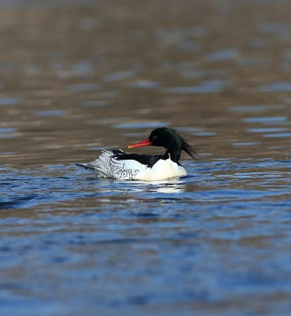 成对或以家庭为群。潜水捕食鱼类。性机警,稍有惊动就昂首缩颈不动,随即起飞或急剧游至隐蔽处。常成3-5只小群活动,有时和鸳鸯混在一起。觅食多在缓流深水处,潜水前上胸离开水面,再侧头向下钻入水中,白天活动时间较长,捕到鱼后先衔出水面而行吞食。主食鱼类、石蚕科的蛾及甲虫等。