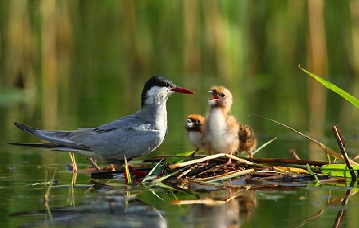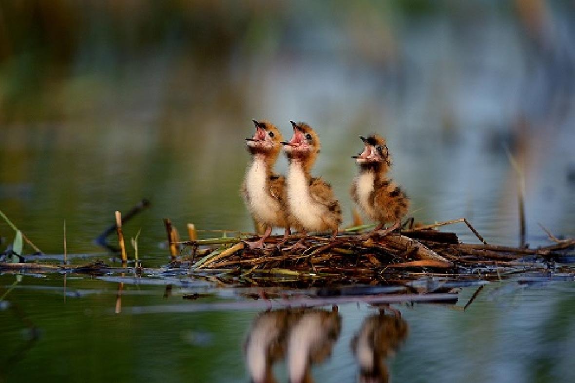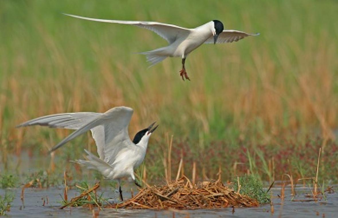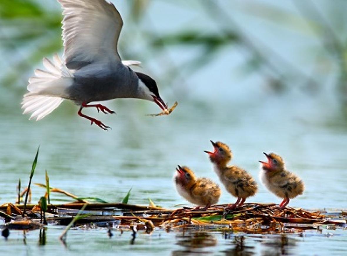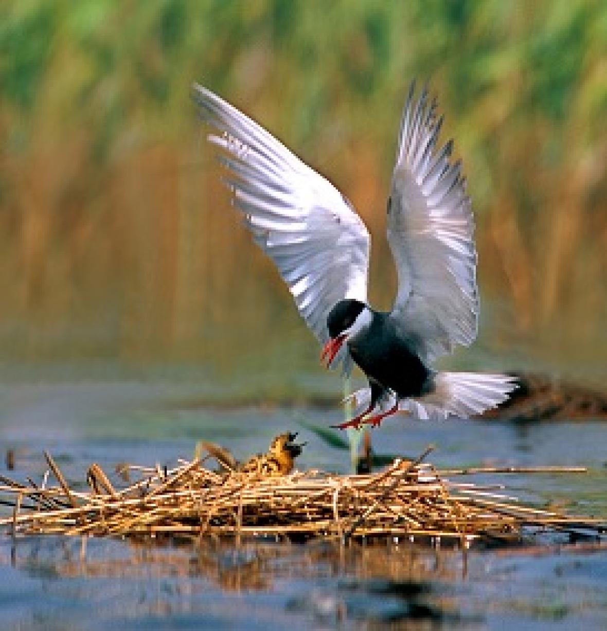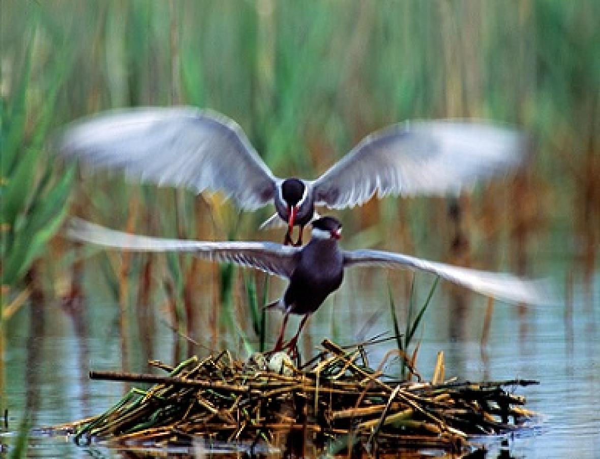 有一次,一只幼鸥不慎落入水中,当时,亲鸟不在身边。正值幼鸥危在旦夕之际,其他巢中的两只大鸥发现了险情,它们立即飞到幼鸥落水的上空,鸣叫不止。叫声就是命令。顷刻间,从四面八方聚集而来的须浮鸥足有几十只,它们拍打着翅膀,形成排列有序的倒三角形——为什么是倒三角形,到现在,我也没弄明白。就这样,在群鸥的帮助下,两只大鸥终于把落水的幼鸥衔上岸。幼鸥平安了,聚拢而来的须浮鸥,才放心地散去……
