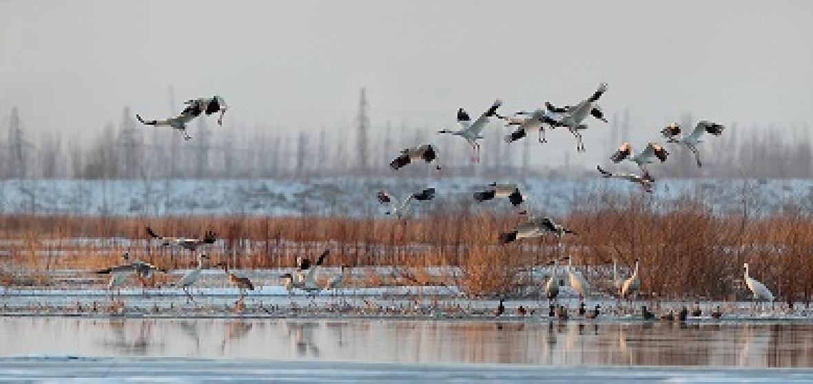 关于鹤的美景,我独爱鹤与浩浩芦荡相依相伴的那种。一只也好,三五成群也罢,仿若世间琴瑟和鸣的绝配:清朗。高蹈。弃世。绝尘。温暖而禅意。这种有精神、有风骨、有气节的景致,是心灵的营养,如美妙的音乐充满诗意。春水。柔光。日影。周遭的一切都是欣欣然刚睁开眼睛的样子,向上的喜气、朝气,在身边萦绕……