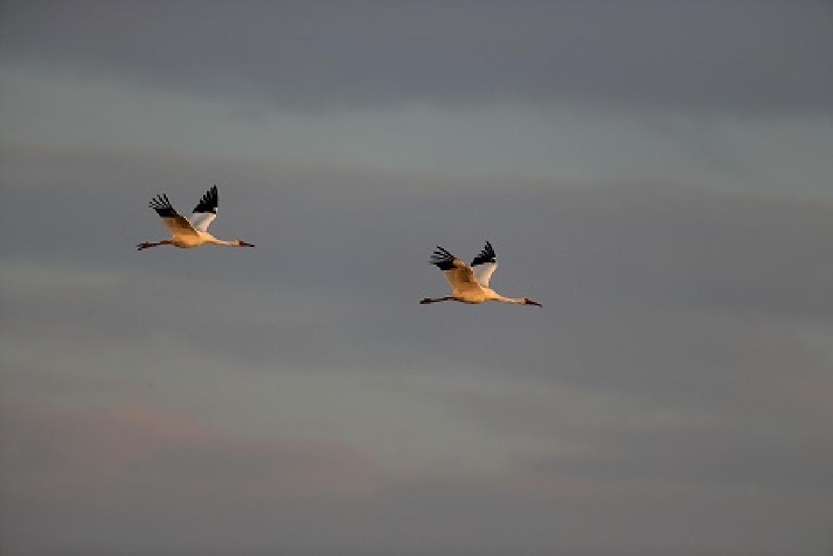白鹤经常单独、成对和以家族为群活动。但是,在迁徙停歇时、在越冬地,它们常常结成几十甚至上百只的大群。