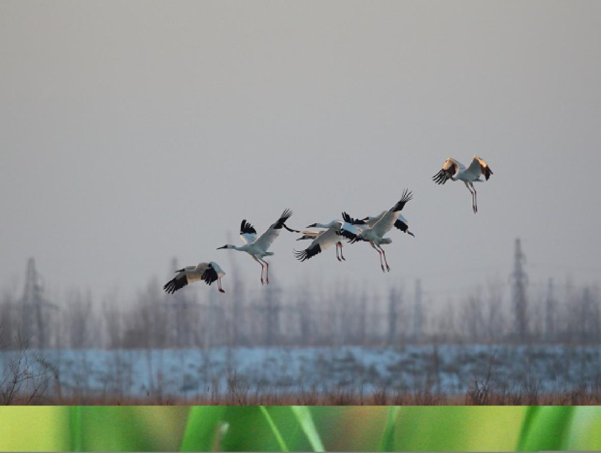 白鹤于每年5月下旬或6月中旬开始繁殖,每次产卵2枚。卵呈暗橄榄色,钝端有大小不等的深褐色斑点。白鹤父母交替着孵卵,但妈妈会更辛苦一些,孵化期约为27天。70~75天后,幼雏长出飞羽,90天可以飞。不过,这期间它们面临的“风险”太多了,幼雏的成活率仅为1/3,几乎只有一只幼雏能活到可以飞翔。因为白鹤的幼雏攻击性强,较弱的一只常常在长出飞羽前就死掉了。因此,白鹤属于国家一级保护动物,已被列入中国濒危动物红皮书“濒危”等级。究其原因,栖息地的破坏和改变占60%,人类捕杀占29%,外来引入种群的竞争、自身繁殖成活率低、环境污染等原因,也是重要因素。