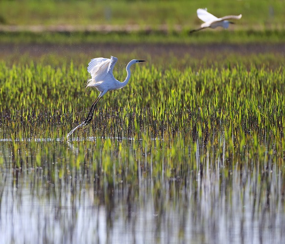 Egrets, also known as white heron, white bird. There are three kinds of egrets in the liaohe estuary, which are large, medium and small.Among them, small egrets are most.