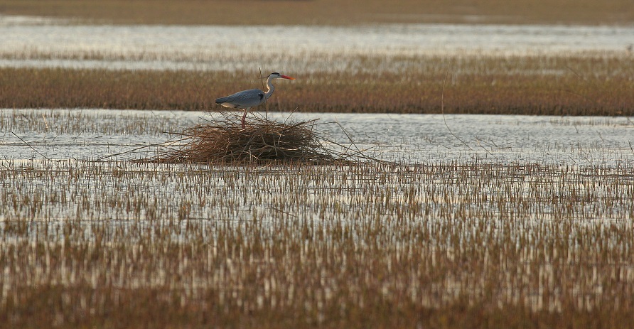 Grey Heron also known as old and green heron.It’s a kind of large waterside bird which belongs to the order of ciconiiformes.They are always in pairs and into small group activities, they are in a large group in winter during the migration, sometimes with mixed egrets group.Nesting in the waters near the tree or reeds, sometimes a tree have several nests or more than ten nests.When the nest is built, it begins to lay eggs.There are 3 ~ 6 eggs in each nest.It mainly lives on animal food such as small fish, loach, shrimp, crawfish, dragonfly larvae, lizards, frogs and insects.They are distributed everywhere in China.